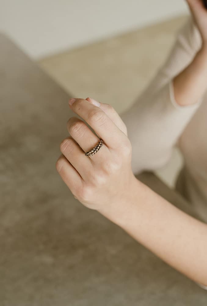 Cada anillo es único y su aspecto final puede variar ligeramente al de la foto, ya que utilizo elementos de la naturaleza crear un molde único y distinto de cada pieza.